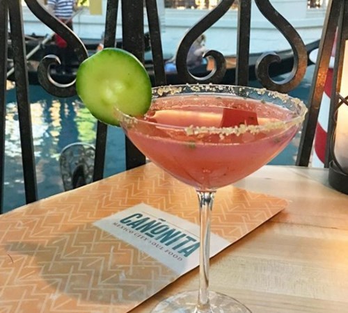 The taste of their hand-made corn tortillas alone is enough to transport you to another world. The décor is as vivid as the menu with casual ambiance, high ceilings and bright, bold colors. Taqueria Cañonita's lively exhibition kitchen is the restaurant's centerpiece. Enjoy your meal amidst the sculpted steel and wrought-iron gates, colorful Mexican tiles and authentic Mexican folk art. Even better, Taqueria Cañonita's patio is set beside the Grand Canal, offering terrific views of our Venetian streetscapes and passing gondolas.