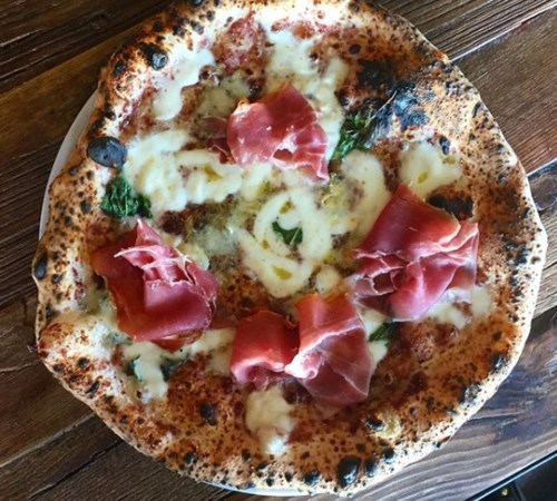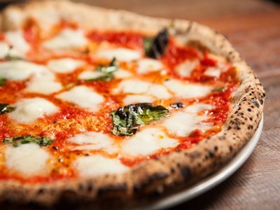 Pizza Napoletana is made with a soft dough and takes about one minute to cook in a wood-burning oven. Because of this, Pizza Napoletana has several distinctive characteristics. Pizza in Napoli is soft and foldable and can be considered "wet" by American standards, for this reason the people in Napoli generally eat their pizza with a knife and a fork. Blackened char spots on the pizza crust is a tell-tale sign of Pizza Napoletana that has been cooked in a blistering hot, wood burning oven. Each pizza is an individual work of art.
